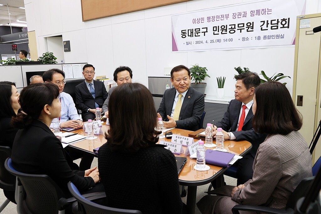 이상민 행정안전부 장관, 동대문구 종합민원실 방문해 민원공무원 보호조치 점검