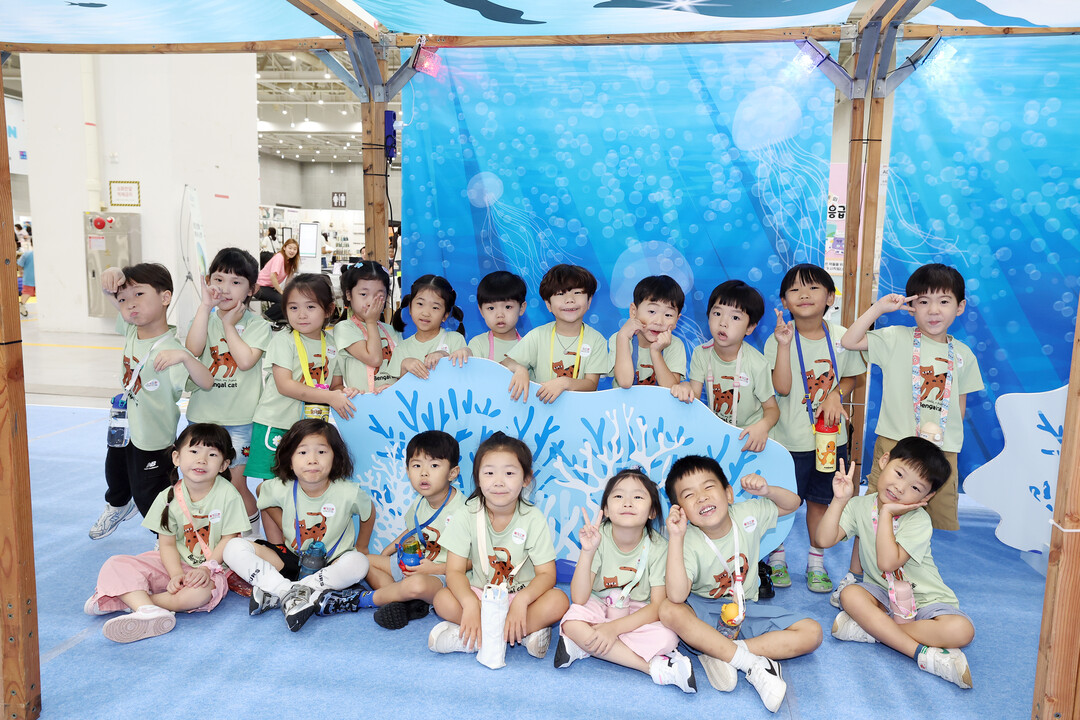 ▲2025 북키즈콘 테마관 중 하나인 “바다마녀의 실험실”에서 아이들이 기념촬영을 하고 있다.(이즈피엠피 제공) |