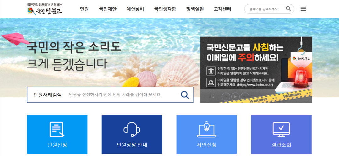 <국민권익위원회 국민신문고 홈페이지 캡처>