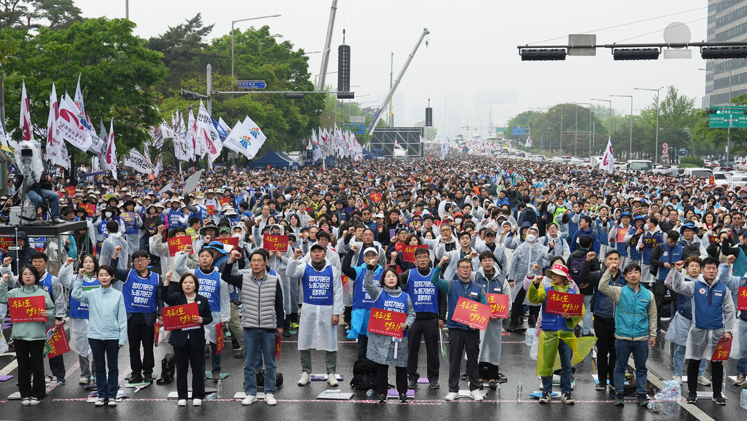 대한민국공무원노동조합총연맹은 10일 서울 여의도 여의대로에서 조합원 1만 명을 비롯해 총 3만 명이 참가한 ‘공무원 기본권·생존권 쟁취 총력투쟁대회’를 개최했다.