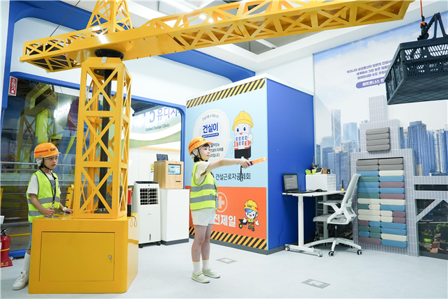 또한, HD현대건설기계의 유아용 건설기계 완구 브랜드 ‘데구르르’와 협업한 ‘건설놀이 팝업 존’도 마련돼, 유아와 보호자가 함께 중장비 완구 놀이, 직업 그림 색칠 등을 즐기며 놀이를 통해 건설 직군에 대한 이해를 넓힐 수 있다. 해당 체험은 별도 비용 없이 무료로 운영된다.