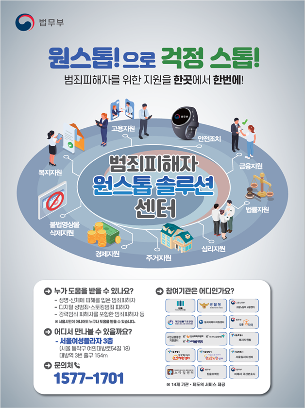 법무부 관계자는 “복합적 어려움을 겪는 범죄피해자에게 신속하고 편리한 지원은 선택이 아닌 필수”라며 “생활안전망에서 이탈하지 않고 일상으로 복귀할 수 있도록 통합지원 체계를 더욱 고도화해 나가겠다”고 말했다.