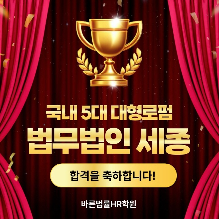 [피앤피뉴스=마성배 기자] 바른법률HR학원이 국내 5대 로펌 중 하나인 법무법인 세종에 법률사무원 합격생을 배출했다고 12일 밝혔다.