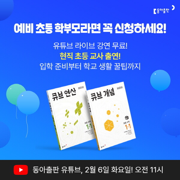[피앤피뉴스=마성배 기자] 교육 출판 전문 기업 동아출판이 예비 초등 학부모를 위한 온라인 강연회 ‘큡입학식’을 개최한다고 밝혔다.