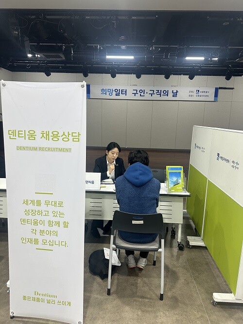 지난달 16일에는 강남고용복지플러스센터에서 중장년층을 대상으로 한 ‘덴티움 채용설명회’를 진행하고 희망자를 대상으로 현장 면접을 진행하기도 했으며 지난 7~8일 고양시 킨텍스에서 개최된 ‘경기도 5070 일자리박람회’에 참여해 부스를 열어 중장년층을 대상으로 한 취업 상담을 진행하기도 했다.