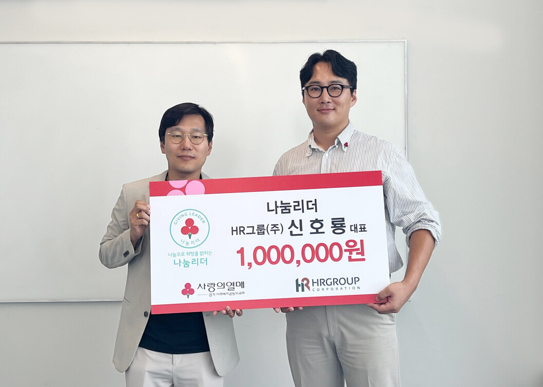 HR그룹(에이치알그룹) 신호룡 대표는 경기 사랑의열매(회장 권인욱)에 100만 원을 기부하며 개인 기부자들의 나눔 클럽, 나눔리더‘경기 160호’로 가입했다고 밝혔다.