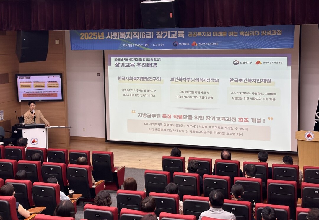 한국사회복지행정연구회와 한국보건복지인재원은 7월 1일 오후 2시 충북 오송 본원 서래당에서 ‘2025년 사회복지직(6급) 장기교육 입교식’을 열고, 국내 최초로 설계된 공공복지 장기교육 프로그램을 공식 출범시켰다.