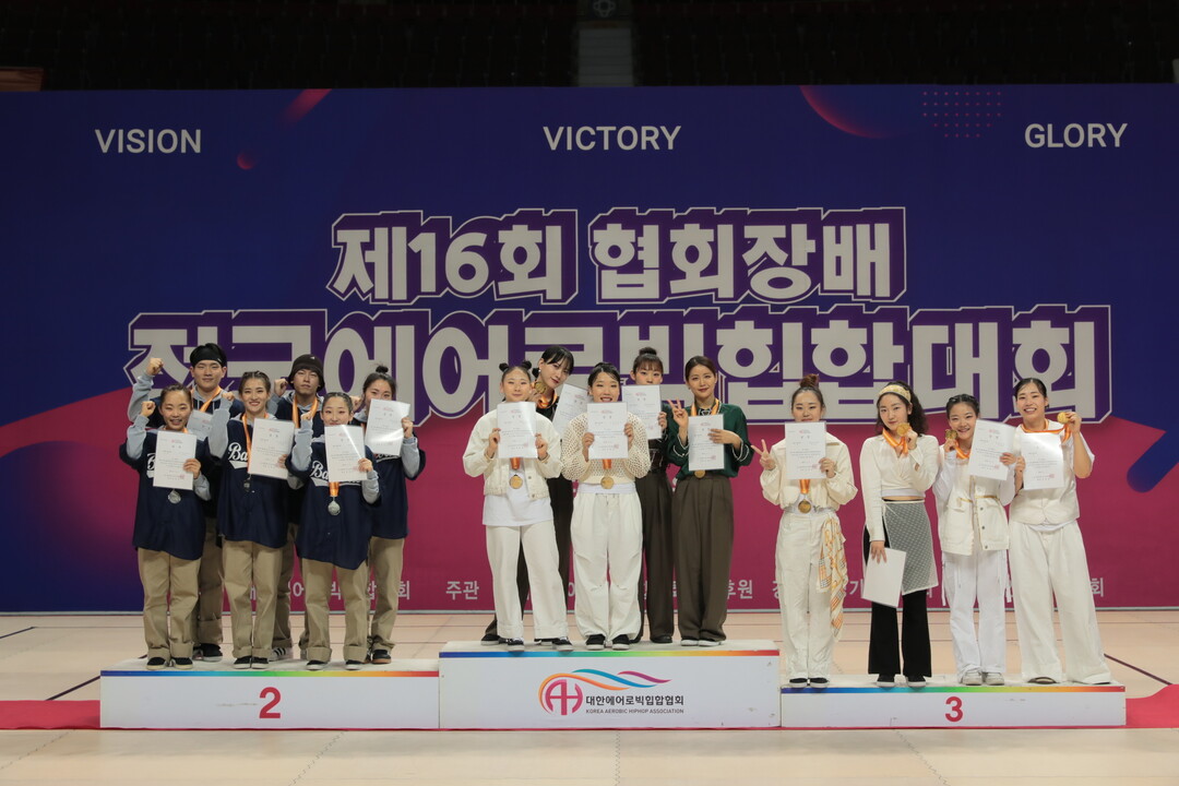 2024년 5월 10일부터 11일까지 경기도 안양체육관에서 열린 제 16회 협회장배 전국에어로빅힙합대회는 바이브댄스학원의 선생님들의 빛나는 활약으로 장관을 이었습니다. 이번 대회에서는 서울 대학로에 5월에 새롭게 오픈한 바이브댄스학원의 선생님들이 놀라운 활약을 펼쳤습니다.
