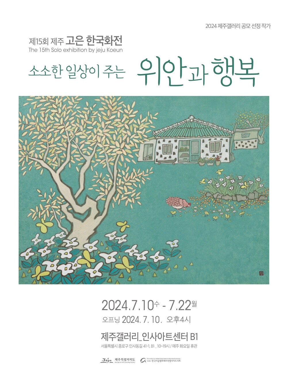 모든 작가에게 창작은 고통이면서 동시에 보람이고 어떤 의미에서는 삶의 숙명 같은 것이다. 작가 고은에게도 창작은 고통이면서 보람이다. 작가는 자신이 살아온 고향 제주도를 그린다. 제주도라 하지만 그 커다란 섬에 살아가는 사람들과 자연, 집과 나무와 물, 바람과 햇빛 그리고 생명이 이어가는 다양한 소리 등등, 그 가운데 무엇을 어떻게 그릴 것인가. 작가는 자기 고향 제주에 대한 정서적 귀속감과 추억이 소환 해주는 장면들을 전통적인 한국화 기법을 바탕으로 하여 간결하면서도 인상적으로 표현하려고 노력해 왔다.