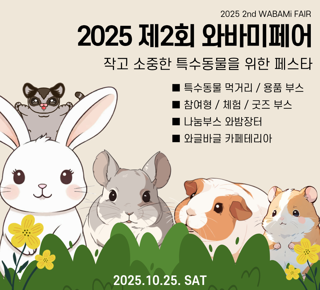 특수동물 전문 브랜드 와바미가 오는 10월 25일 토요일 특수동물 페어 ‘2025 제2회 와바미페어’를 개최한다.
