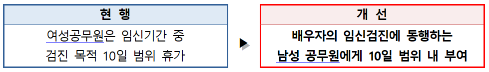 또 하나의 주목할 변화는, 남성 공무원의 ‘배우자 임신검진 동행휴가’가 신설된다는 점이다. 기존에는 남성 공무원이 동행을 원할 경우 연가나 조퇴 등으로 처리해야 했지만, 앞으로는 최대 10일 이내의 특별휴가로 지원받을 수 있다.
