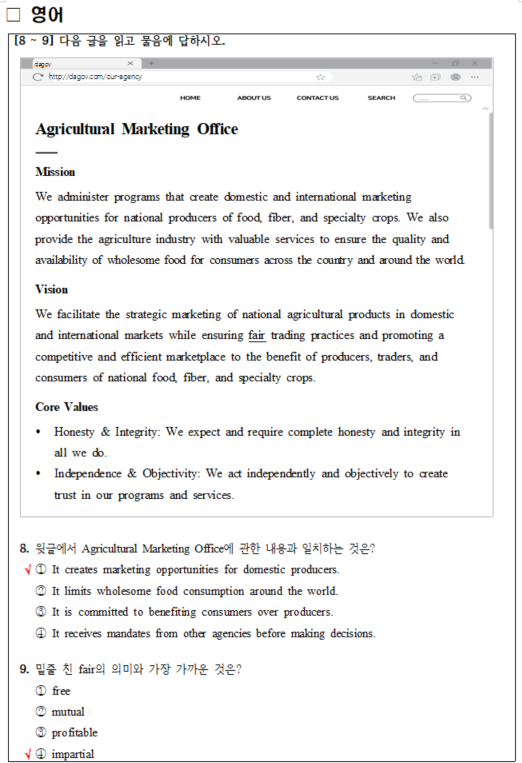 오늘(5일) 인사혁신처는 내년부터 새로운 출제기조로 전환되는 9급 공무원 시험 국어·영어 과목의 2차 예시문제를 사이버국가고시센터(www.gosi.kr)에 공개했다고 밝혔다.