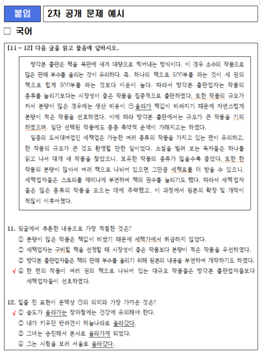 이번 2차 예시문제 공개는 약 8개월 만에 이루어진 것으로, 수험생들이 새로운 문제 유형에 보다 쉽게 적응할 수 있도록 국어와 영어 과목 각각 20문항의 예시문제를 추가로 공개했다.