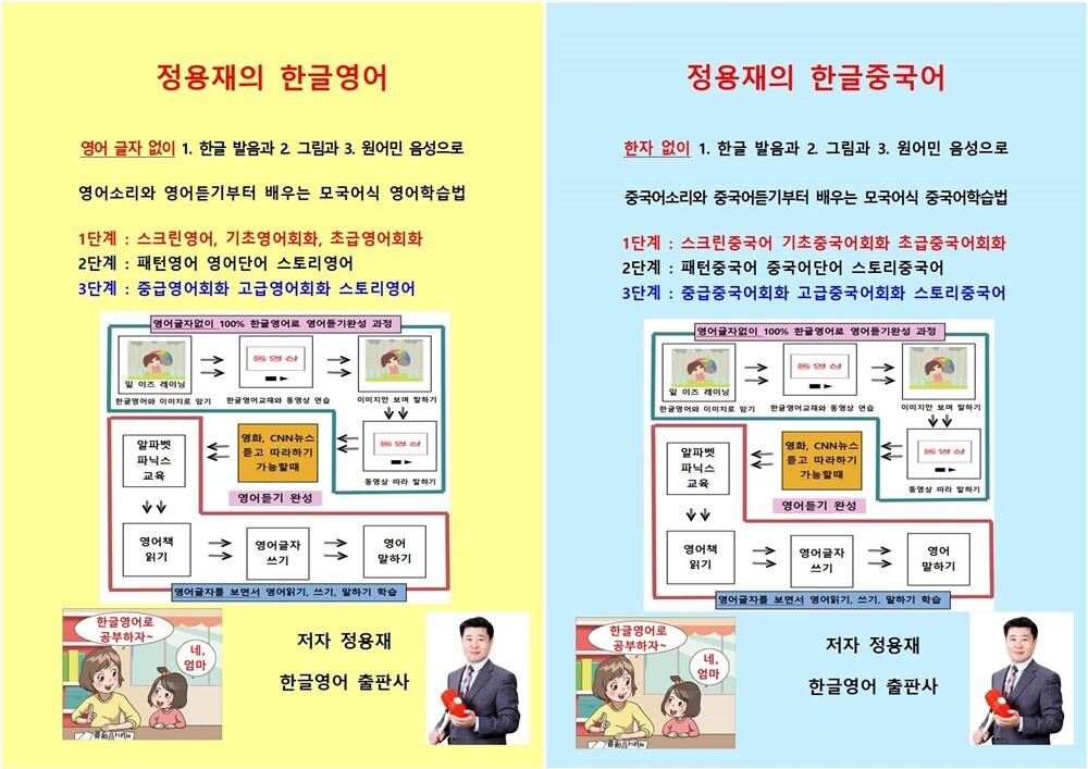 한글영어 출판사가 ‘정용재의 한글영어’와 ‘정용재의 한글중국어’ 전자책 시리즈를 온라인 서점에 새롭게 출간했다.
