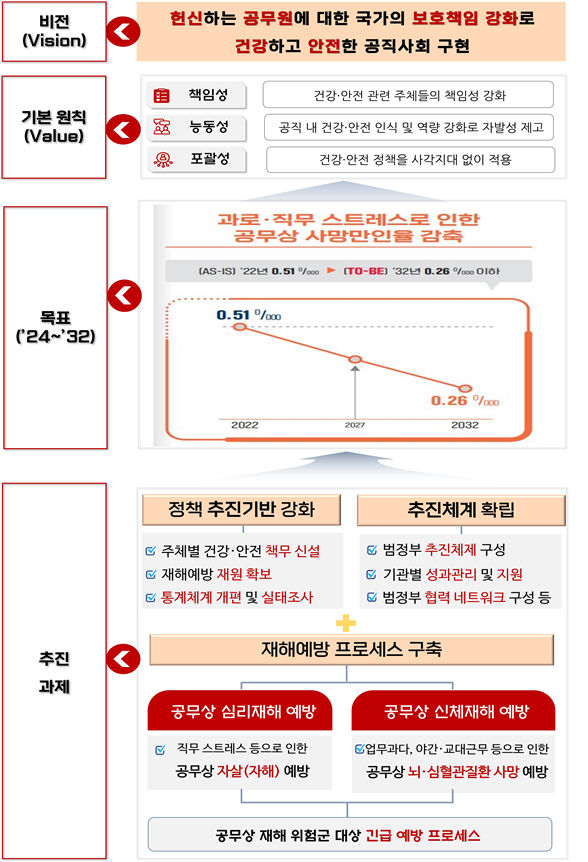 건강진단 확대 및 ‘긴급 직무 휴지 제도’ 도입, 공무원 건강안전센터 확대 개편 등