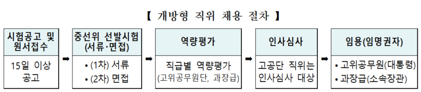 2024년 12월 31일부터 개방형 직위 공고 기간이 기존 15일 이상에서 10일 이상으로 단축된다. 이를 통해 우수 인재의 신속한 선발과 임용을 지원할 계획이다.