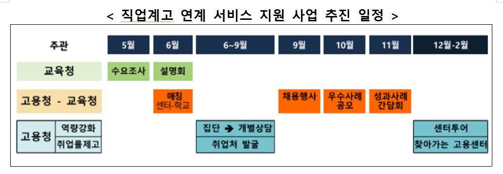 지난 2월부터 양 부처는 ‘과장급 전략적 인사 교류’, ‘학교-노동시장 원활한 이행을 위한 직업계고 맞춤형 취업 지원 체계 강화’를 협업 과제로 선정하여 협업을 추진하고 있다.