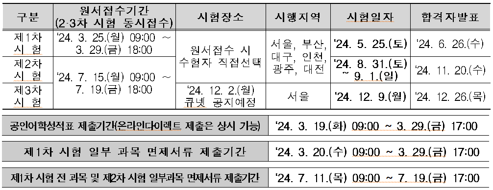 원서접수 3월 25~29일, 1차 시험 5월 25일(토) 시행