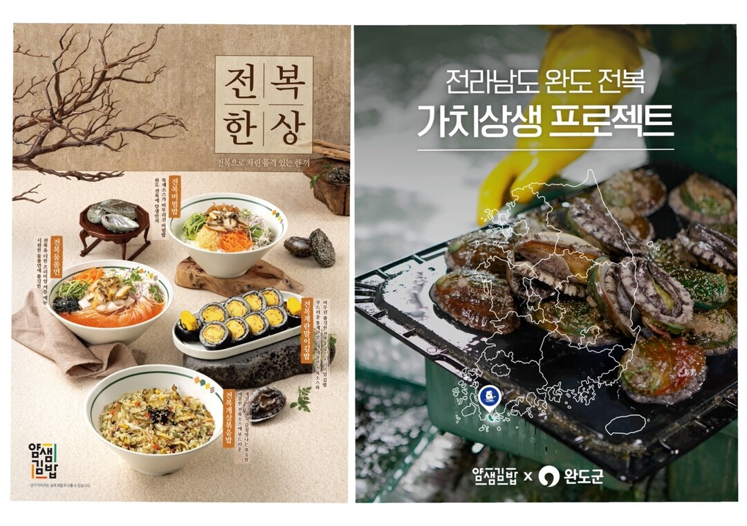 얌샘김밥은 최근 완도의 대표 특산물인 전복을 활용해 전복통계란말이김밥, 전복물쫄면, 전복게살볶음밥, 전복비빔밥을 대중적인 김밥, 분식 메뉴로 구성된 ‘전복 한상’ 시리즈를 선보였다. 고급 식재료로 여겨졌던 전복을 일상식에 접목해 접근성과 친숙함을 높인 것이 핵심이다.