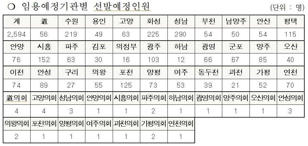 [피앤피뉴스=마성배 기자] 2024년 경기도가 신규공무원 채용인원을 확정했다. 지난해보다 21명 증원된 2,594명이다.