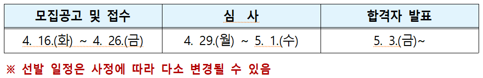□ 접수 기간 : 2024. 4. 16.(화) 09:00 ~ 4. 26.(금) 18:00