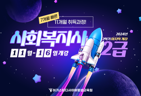 여기스터디사이버평생교육원, 사회복지사2급 최단기 7개월 빠른 취득 가능한 11월 16일 개강