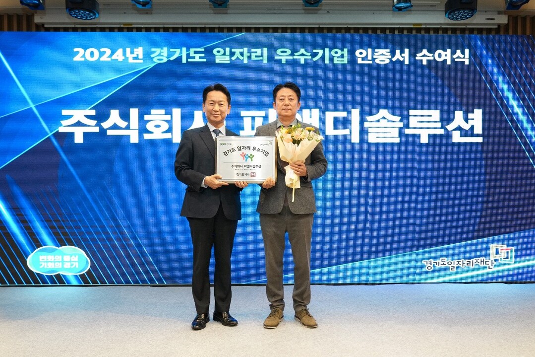 비즈니스 데이터 분석 전문 기업 피앤디솔루션(대표 김성기)이 경기도 일자리 재단이 선정한 ‘2024년 경기도 일자리 우수기업’으로 선정되어 인증서를 수상했다고 밝혔다.