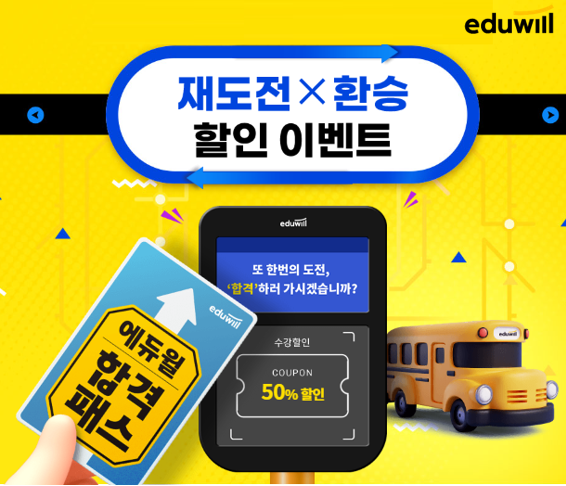 재도전 및 환승 할인이 적용되는 상품으로는 ‘장학금 드림패스’, ‘평생수강 합격패스’, ‘스피드패스’ 과정이 있다. ‘장학금 드림패스’ 과정은 합격 시 30만원의 축하 지원금을 제공하고, ‘평생수강 합격패스’ 과정은 합격할 때까지 넉넉한 수강기간을 지원해 수험생이 자신의 속도에 맞춰 학습할 수 있다. 또 ‘스피드패스’ 과정은 단기 합격에 최적화된 커리큘럼으로 빠른 합격을 도와준다.