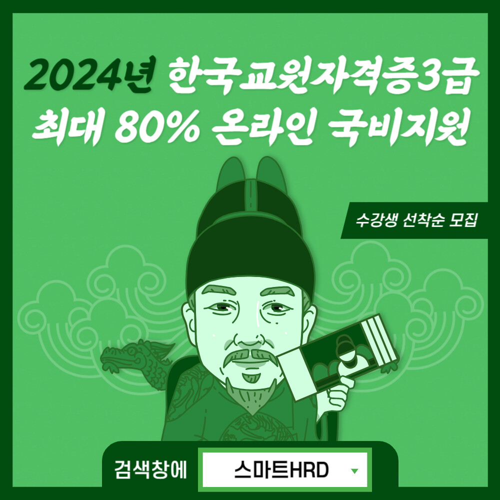 한국어교원자격증 3급 등 국비지원 온라인 교육에 관련된 자세한 내용은 포털 사이트에 ‘스마트HRD’ 검색 후 온라인 무료상담 또는 전화상담을 통해 안내받을 수 있다.