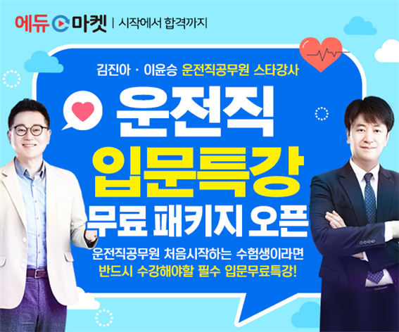 에듀마켓은 운전직공무원을 처음 시작하는 입문자에게 운전직 입문특강 무료 패키지를 오픈해 서비스하고 있다.