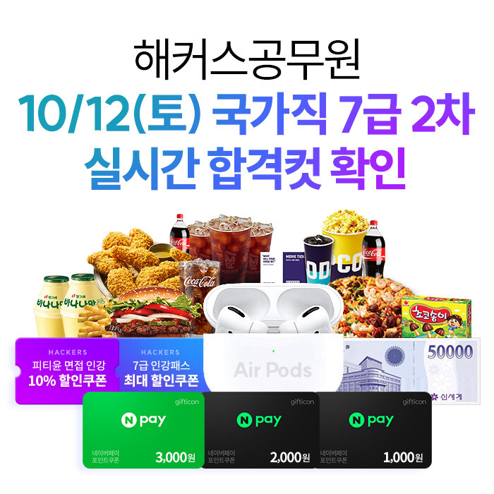 한편, 해커스공무원은 7급 공무원 시험을 준비하는 수험생들을 위해 ‘7급 합격해도 불합격해도 수강료 0원 패스’를 제공하고 있다. 7급 행정직과 PSAT 전 강좌를 무제한으로 수강할 수 있고, 합격해도 불합격해도 수강료를 100% 현금으로 환급해준다. (*미션 달성 시, 교재비/강의옵션 환급대상 제외, 제세공과금 본인부담)