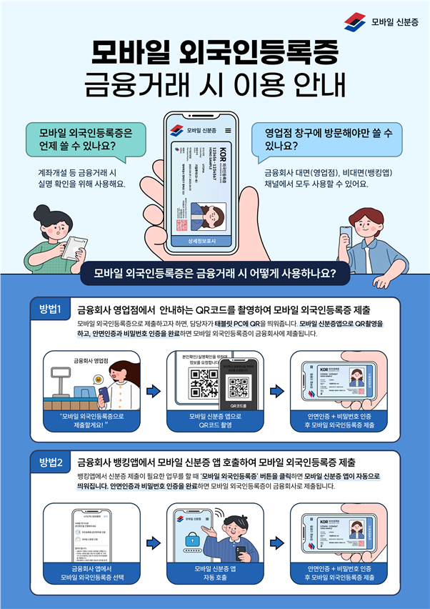 이번 조치는 출입국관리법 개정(2023.12.14 시행)으로 모바일 외국인등록증이 기존 외국인등록증과 동일한 법적 효력을 갖게 됨에 따라, 금융당국이 행정안전부·금융결제원·금융보안원·은행권 등과 협력해 금융 시스템을 정비한 결과다.