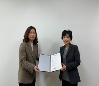 <사진 : 한양사이버대학교 응용소프트웨어공학과 민연아 교수(오른쪽), 포유시큐리티 손연형 수석(왼쪽)>