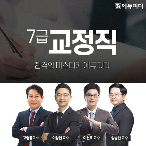 에듀피디의 7급 교정직 합격패키지는 ‘기초+이론+문풀+기출해설’로 기획되었으며, 최신 출제 기조를 완벽하게 반영함은 물론 학습효과 극대화 방안으로 이해-암기-문제풀이 적용이라는 ‘3사이클’ 학습 과정을 고안해 한 번의 수강 만으로도 2회독 효과를 낼 수 있도록 기획해 학습 시간 대비 빠른 실력 향상과 점수 획득을 기대할 수 있다.