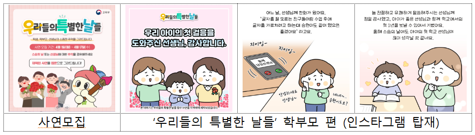 또한, 함께학교 플랫폼에서는 스승의 날을 기념하는 이벤트가 진행된다. 선생님께 감사 메시지를 전하고, 교원 응원 캘리그라피 바탕화면을 배포하며, 건강 관리에 대한 영상을 게재하여 교원들에게 응원의 마음을 전한다.