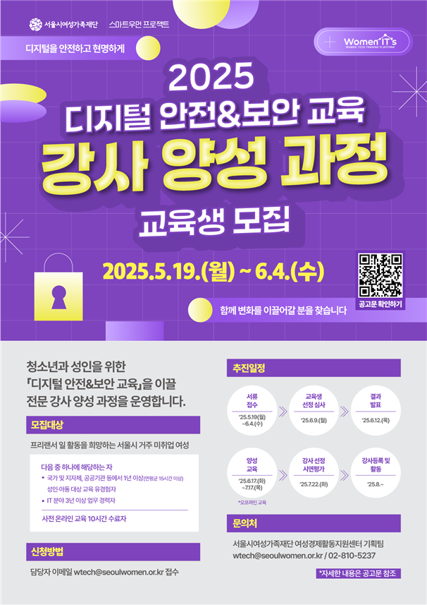 | ▲「2025 디지털 안전&보안 교육 전문가 양성 과정」참여자 모집 포스터 |