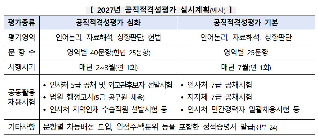 2027년부터 PSAT(공직적격성평가)이 별도의 공통역량 검정시험으로 분리돼 시행된다.