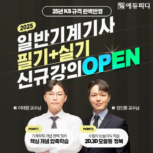 종합교육기업 에듀피디가 2025년 일반기계기사 자격증 취득 시험을 준비할 수 있는 ‘필기+실기 합격패키지’ 신규 강의를 오픈하고 수강생을 모집한다고 밝혔다.
