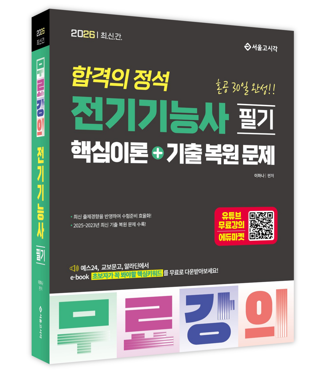 전기기능사 필기시험을 준비하는 수험생들은 흔히 “시간이 부족해요”, “어디서부터 시작해야 할지 모르겠어요”, “문제 암기 말고 다른 방법은 없나요?”라는 고민을 털어놓는다. 이러한 수험생들의 현실적인 질문에서 출발해 수험서 분야의 대표 출판사인 도서출판 서울고시각은 『2026 합격의 정석 전기기능사 필기 핵심이론+기출복원문제(무료강의)』를 출간했다.