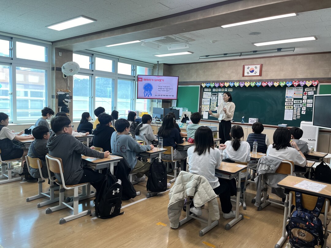 ▲4월 2일 의성초 학생 대상으로 심리 안정화 교육을 진행하고 있다.(사진: 한국교육시설안전원)