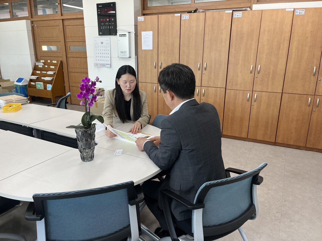 ▲4월 2일 의성초 심리 안정화 교육 실시 전 관리자 컨설팅을 진행하고 있다.(사진: 한국교육시설안전원)