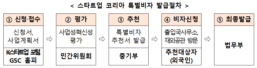 스타트업 코리아 특별비자 신청은 K-스타트업 포털과 글로벌 스타트업 센터 홈페이지에서 11월 7일부터 20일까지 접수 가능하며, 이달 말에는 첫 비자 발급 대상자가 나올 전망이다.