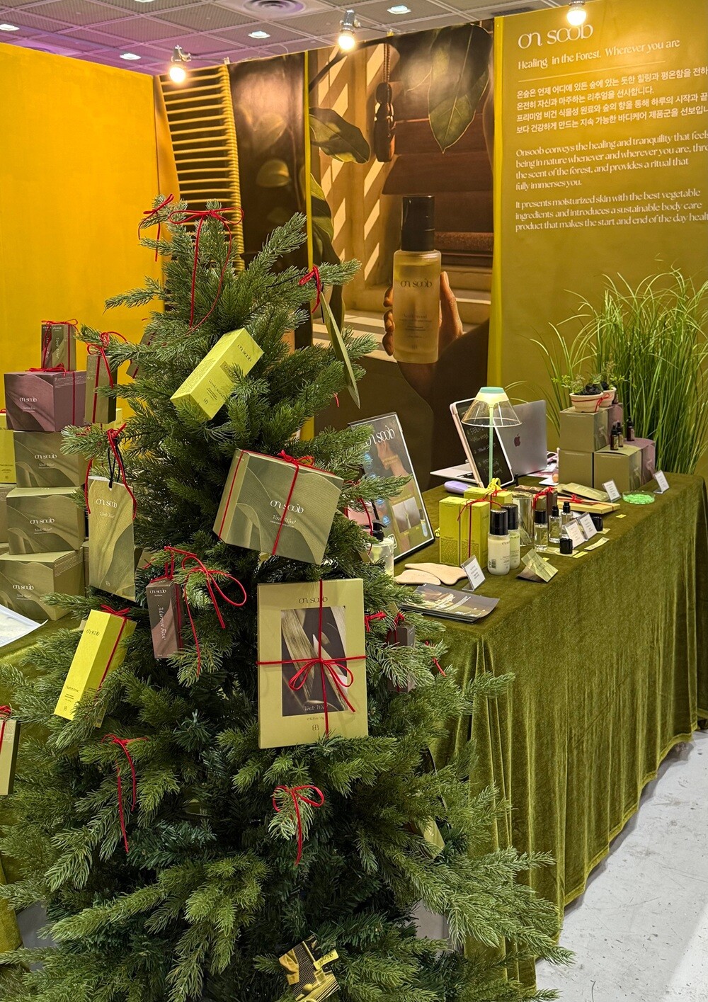 온숲은 이번 전시에서 대표 제품인 ‘포레스트 모먼트 오일 세럼 바디미스트’ 2종을 비롯해 배쓰솔트와 스톤디퓨저, 퍼퓸 등 신규 라인업을 함께 선보였다.