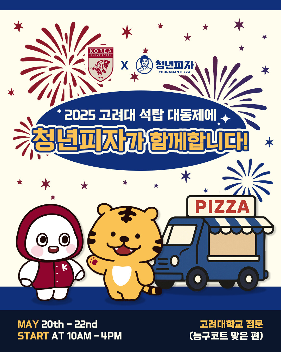 피자 프랜차이즈 청년피자(대표 정관영)가 2025년 5월 20일부터 22일까지 고려대학교 서울캠퍼스에서 열리는 ‘석탑대동제’에 참가해 MZ세대와의 소통을 강화한다.