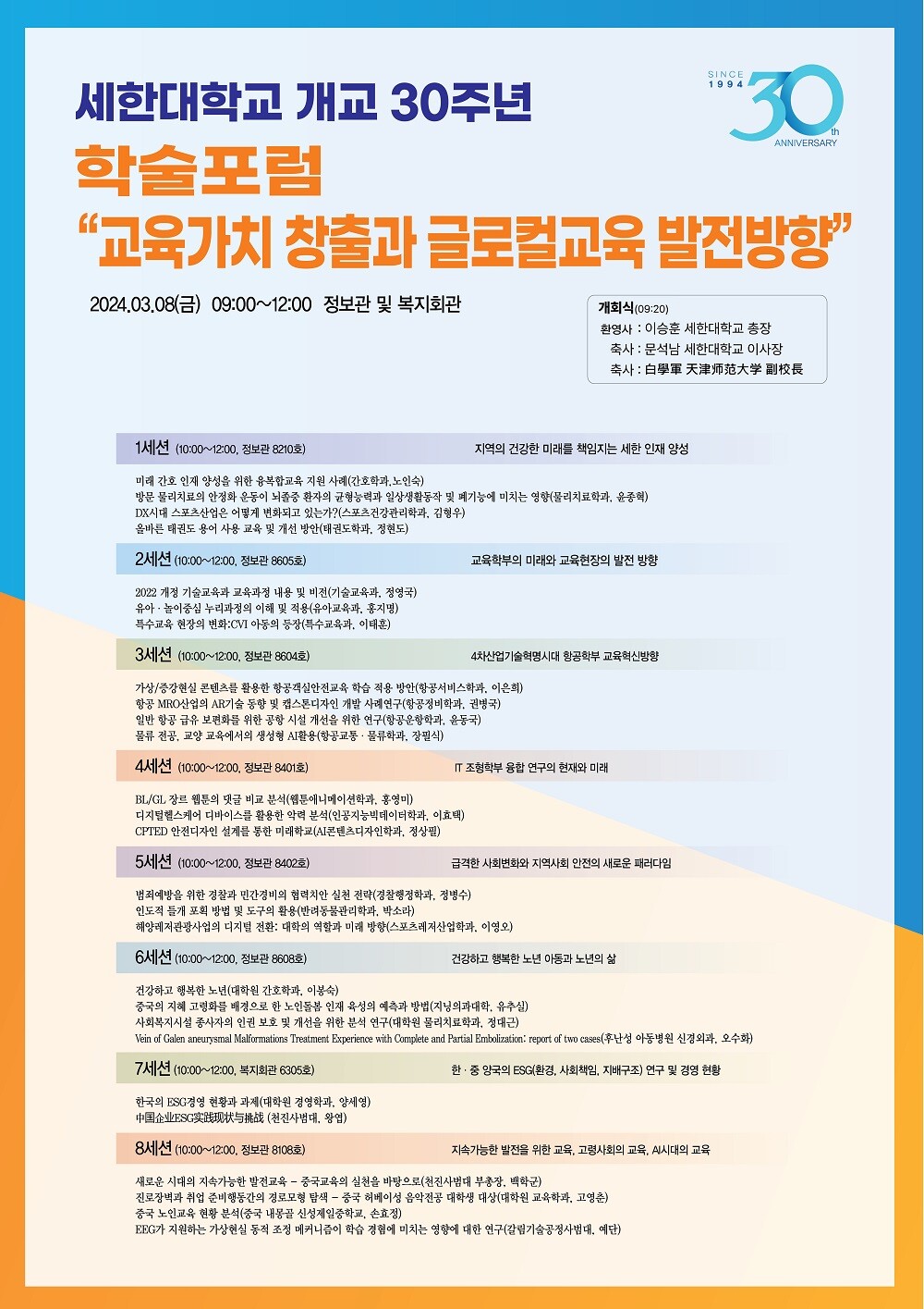 세한대, 개교 30주년 기념 국제학술포럼 개최