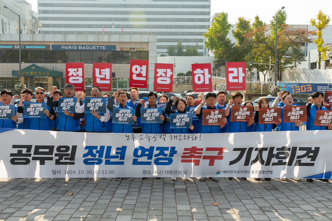 공노총은 기자회견문을 통해 정부가 공무원 정년 연장 논의를 조속히 진행해야 한다고 요구했다. 공노총 대변인은 “2015년 공무원연금법 개정 당시, 정부는 연금 개시 연령을 65세로 연장하면서 소득 공백 해소를 약속했지만, 10년 가까운 세월이 흐르는 동안 해결된 것이 없다”고 밝혔다. 이어 “이제는 정부와 국회가 공무원의 정년 연장을 논의 테이블에 올려야 할 때”라며 강하게 촉구했다.