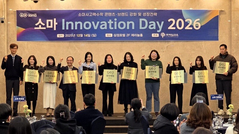 소마 관계자는 “이번 이노베이션 데이는 단순한 연말 행사 이상의 의미로, 소마의 콘텐츠·브랜드·가맹 성장전략을 공식적으로 공유하는 자리였다”며 “2026년에도 가맹 센터장들과 함께 안정적인 성장 모델을 만들어 사고력 수학의 선두주자 지위를 더욱 공고히 해 갈 것”이라고 말했다.