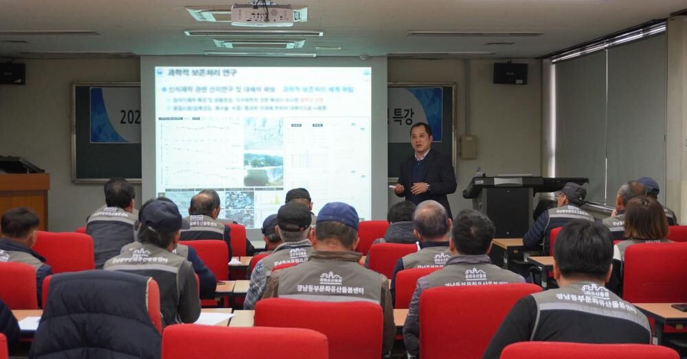 이번 특강은 문화재청 문화재보존과학센터 이태종 학예연구사를 초청해 ‘문화유산 보존의 이해’를 주제로 ▲문화유산 보존의 가치 ▲문화유산 보존 윤리와 규범 ▲문화유산 보존과 활용방안 등 내용으로 진행됐다.