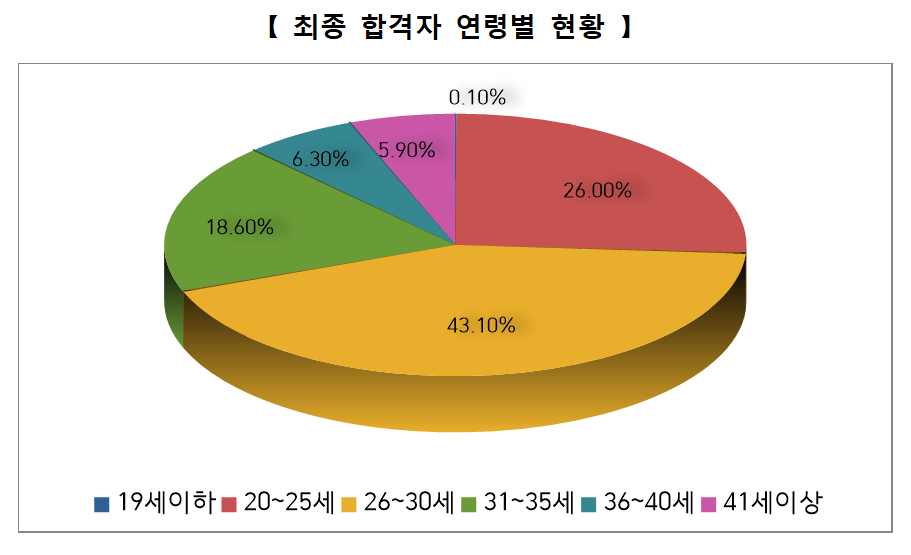 또한, 합격자들의 평균 연령은 29.26세로 지난해보다 소폭 증가했으며, 연령대별로는 26~30세가 43.1%로 가장 많은 비중을 차지했다. 최연소 합격자는 18세, 최고령 합격자는 52세였다.