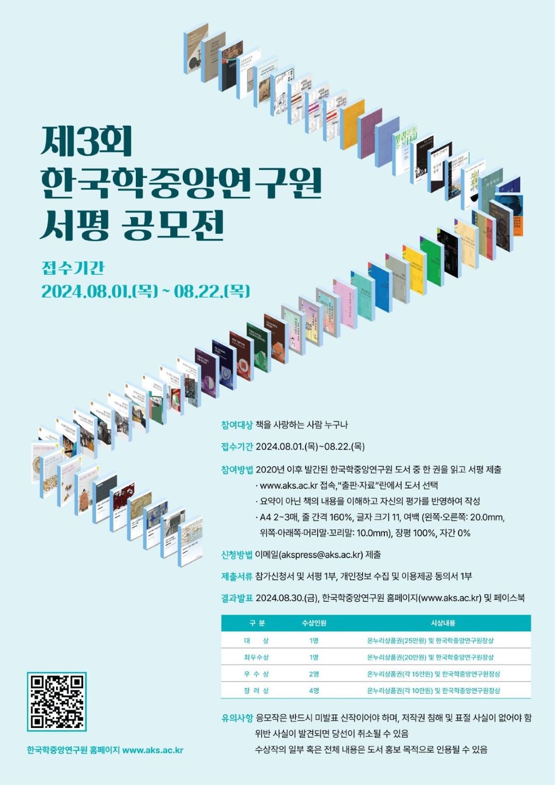 ‘제3회 한국학중앙연구원 서평 공모전’ 개최...8월 1일~22일까지 모집
